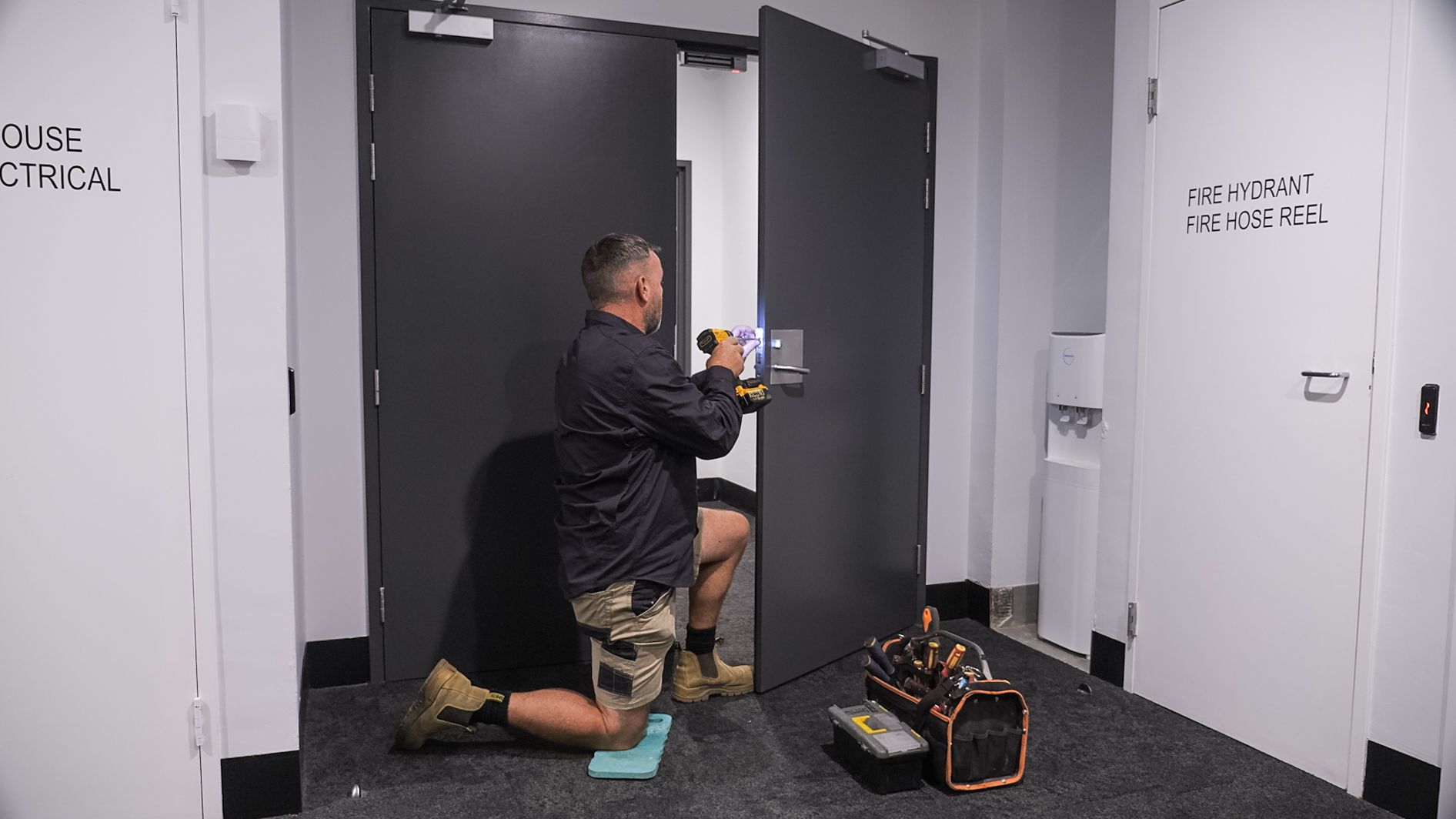 - Door Hardware including locks, door closer and anti-tamper plates.
